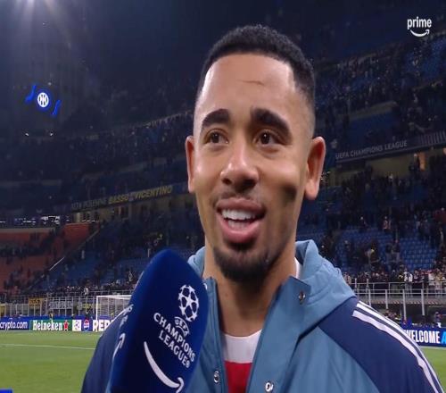 欧冠联赛阶段第7轮,阿森纳客场3-1战胜国米,本场比赛梅开二度的热苏斯赛后接受了亚马逊频道的采访。你在赛前提...