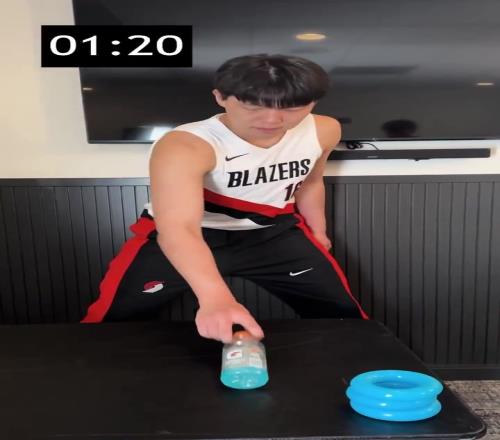 杨瀚森玩翻瓶子&套圈&扔乒乓球游戏展现运动天赋&细腻手感
