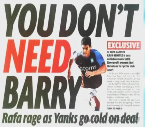 于是,贝尼特斯向当时的美国老板(吉列和希克斯)申请增加预算,他说巴里是多面手,不但能踢中场,还能踢左后卫,但美国老板说“我们已经花了不少钱(700万镑)签左后卫多塞纳了”。