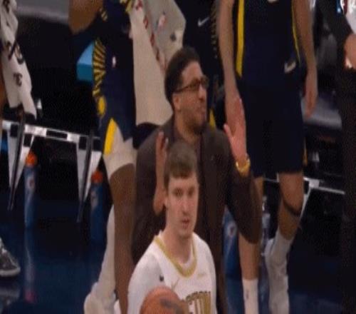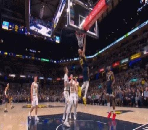 这也太骚了!赫夫突破空中拧麻花反手扣篮哈利伯顿一脸不可思议
