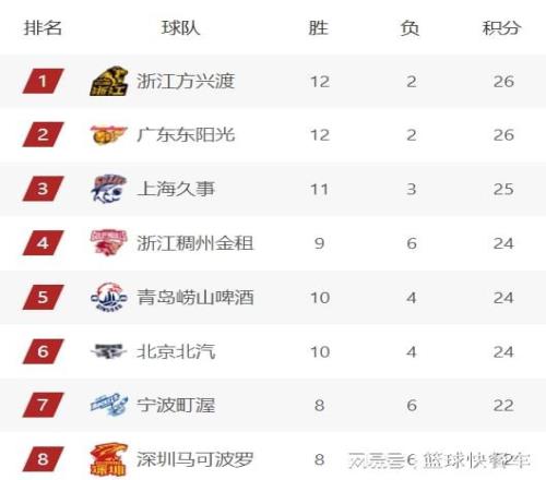 附:CBA积分榜最新排名