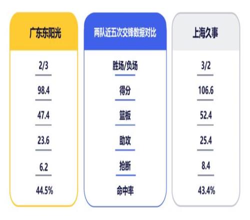 1月15日,CBA常规赛第15轮,广东东阳光将在主场迎战上海久事男篮。上赛季双方有过5次交手,华南虎2胜3负。