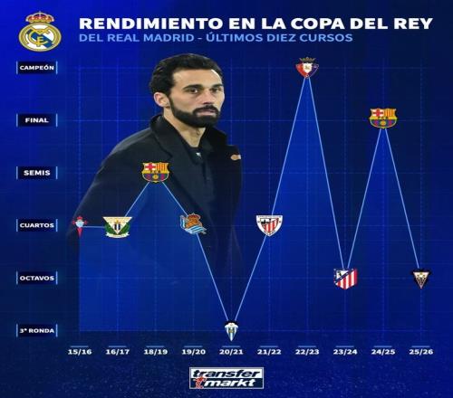 体育播报1月15日宣 今天凌晨,皇家马德里在国王杯被西乙球队阿尔瓦塞特爆冷淘汰,德国转会市场发文,盘点了银河战舰近11个赛季的国王杯成绩。