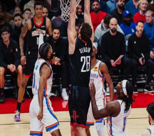 乌度卡显然希望通过篮板控制权掐死雷霆的快速推进节奏,将比赛拖入泥潭式的阵地肉搏,然后利用夹击和包夹限制持球核心,同时依靠二次进攻蚕食分数。雷霆这边同样针对性极强,他们对杜兰特和申京的持球采取围剿式防守,一旦两人拿球就迅速形成包夹,迫使火箭核心球员在高压下做出选择。这种核心对核心的针对性防守,让双方当家球星都打得比较吃力。雷霆第一得分手亚历山大全场仅出手11次命中6球,罚球8中7,贡献20分2篮板4助攻2盖帽。虽然得分不算爆炸,但他成功延续了连续112场至少20分的惊人纪录。
