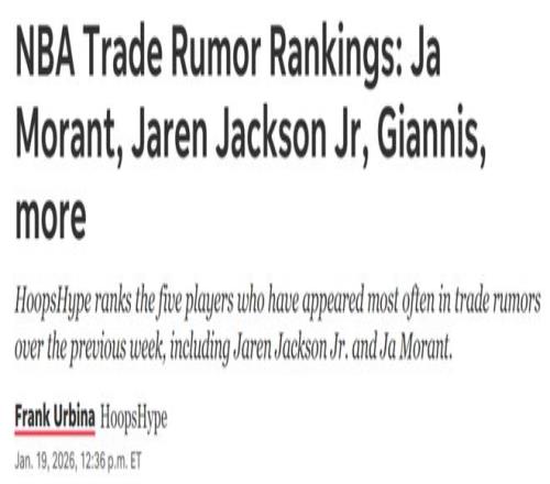 另外一方面是《雅虎体育》曝出联盟内高管普遍认为,如果交易莫兰特,那么小贾伦杰克逊将成为下一个被推倒的多米诺骨牌。