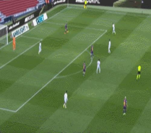 奥尔莫最重要的一点,就是他不只是组织进攻,还能参与防守。这一次拉菲尼亚上抢踢空了,对手打孔德背后获得机会。