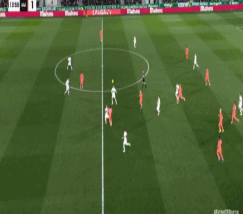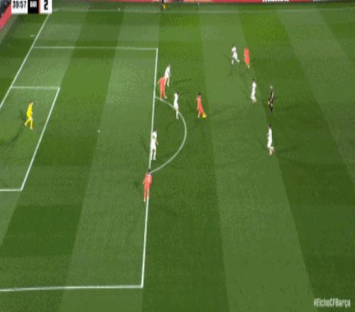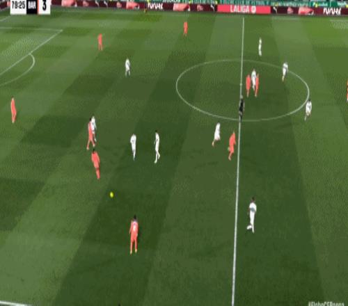 第40分钟,德容冷静回做,费兰-托雷斯推射破门,巴萨2-1!