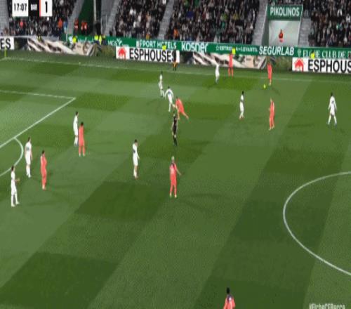 第24分钟,巴萨后防被打穿,阿尔瓦罗-罗德里格斯打门偏出