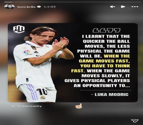 克罗斯社媒转发了莫德里奇的这段经验之谈,对此表示认同。