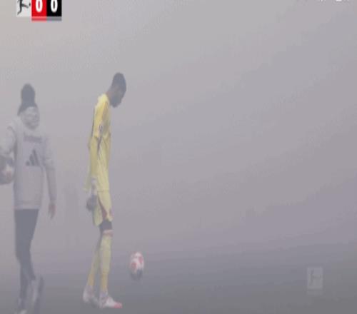 第10分钟,球迷燃放烟花造成场上烟雾过大,裁判暂时吹停比赛
