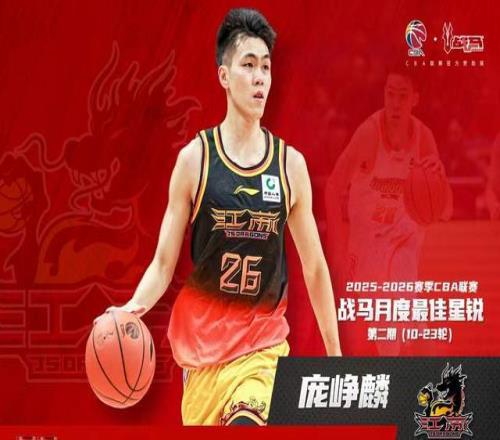 近日,CBA官方公布2025-26赛季第二期月度最佳星锐球员,江苏男篮新秀后卫庞峥麟成功蝉联这一殊荣,成为本赛季唯一一位连续两期当选的星锐球员。更令人震撼的是,他已入选CBA全明星首发阵容,并正式进入中国男篮集训队——一个新秀,三重身份,一步登天,创造历史!
