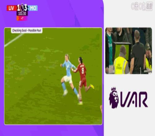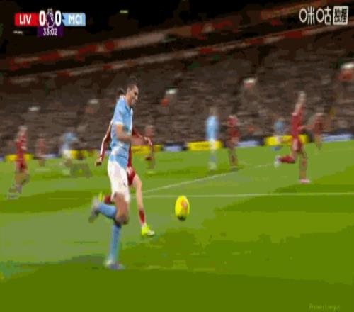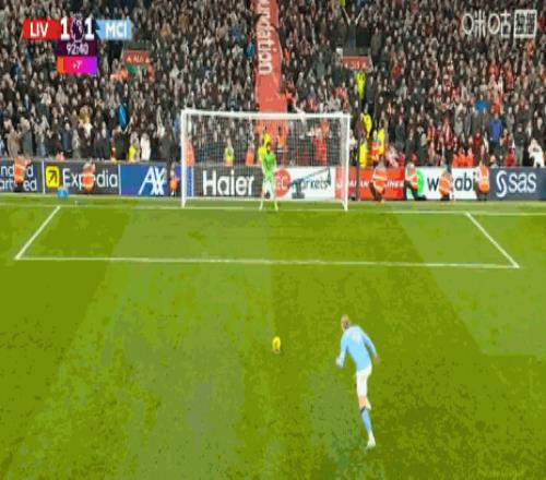 第84分钟,哈兰德头球摆渡,B席门前铲射破门,曼城扳平比分1-1利物浦!