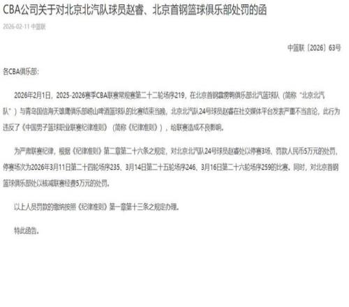 之前赵睿的言论引发了无数人的热议,因为那个时候他的言论确实伤害了不少人。毕竟在评论区对着球迷指责,而且还发表了争议言论。在时隔多日之后,CBA也终于官宣了最终的处罚。根据公告显示:对北京北汽队24号球员赵睿处以停赛3场、罚款人民币5万元的处罚,同时,对北京首钢篮球俱乐部处以核减联赛经费5万元的处罚。