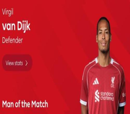 最终经过英超官网球迷投票,范戴克以68%的得票率当选全场最佳球员。