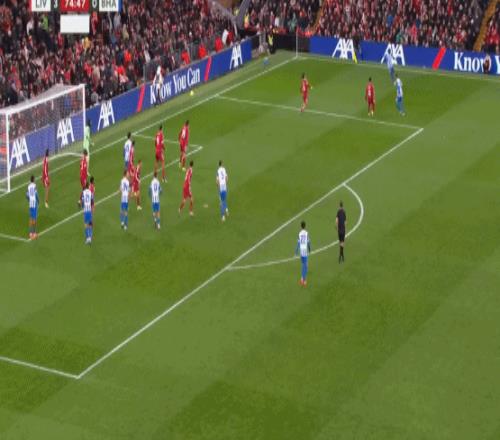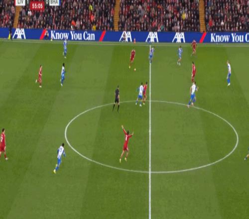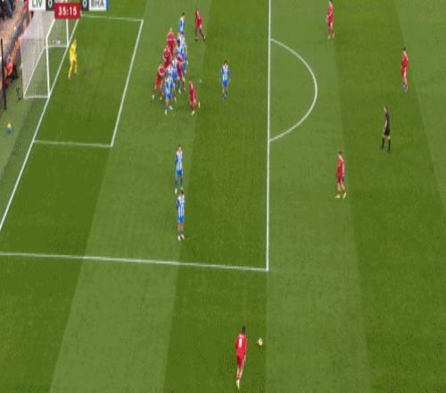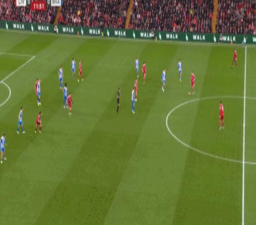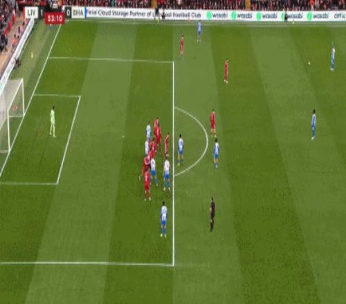 第56分钟,萨拉赫不停球妙传,索博斯洛伊后插上抽射破门,利物浦2-0!