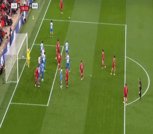 第16分钟,萨拉赫主罚小角度任意球直接攻门,皮球偏出立柱