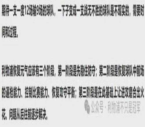 之前我们说过多次“利物浦恢复元气需要三个阶段”: