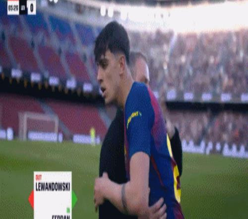 第66分钟,莱万被换下,佩德里替补登场迎来复出