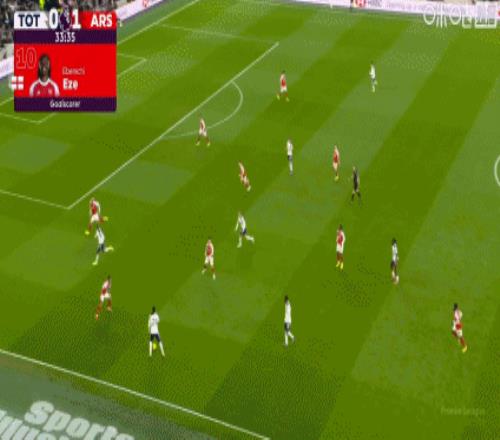 第32分钟,埃泽凌空抽射破门!阿森纳客场1-0领先热刺!