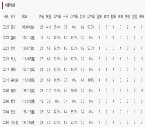 整个二月份里萨谢出战了10场比赛,只有两场比赛拿上双的数据,还有一场拿0分,里萨谢场均只有7.1分,命中率也只有36.3%,里萨谢这位2024年的状元郎进步实在是太小。