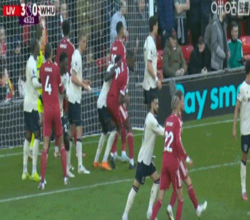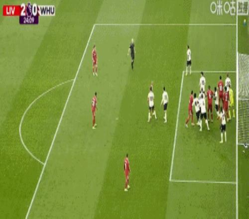 第24分钟,索博斯洛伊开出角球,范戴克头球建功,利物浦2-0西汉姆联