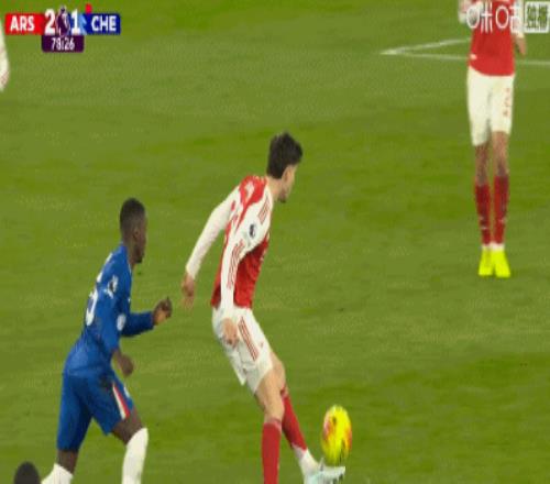 第29分钟,萨卡内切传球,赖斯放了高射炮