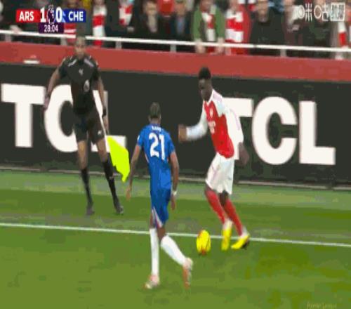 第12分钟,有点危险!桑切斯横传,萨尔停球遭到萨卡逼抢