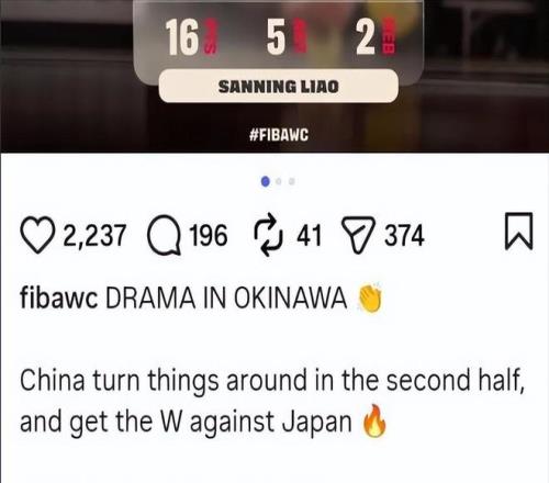 赛后数小时,国际篮联官方X账号发布英文战报,标题赫然写着:“ChinawithasneakywinoverJapan”。其中“sneaky”一词带有强烈贬义色彩,暗指胜利手段隐秘、结果存疑,此举瞬间引爆中国球迷情绪,数万条评论齐刷刷要求其删除原文并公开致歉。