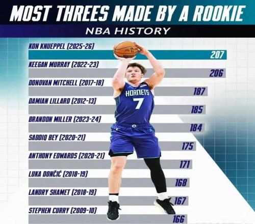 前几天已经刷新新秀三分历史纪录了