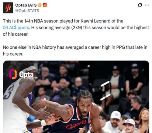 这让小卡在生涯第14个赛季,场均仍能砍下27.9分创造生涯新高,成为NBA历史上首位在生涯第14个年头创造场均得分生涯新高的球员。