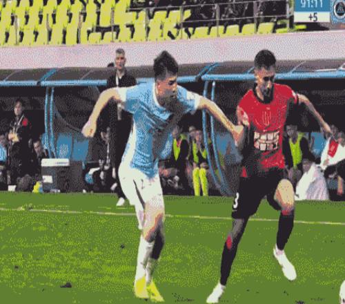 正当人们揣测深圳能否延续攻势扩大优势时,转折点猝不及防降临——第18分钟,成都蓉城外援韦林顿于右路高速持球推进,深圳队长姜至鹏果断上前封堵,在身体接触过程中,右肘无意抬高,正中韦林顿左脸颊。