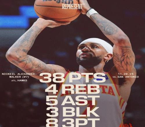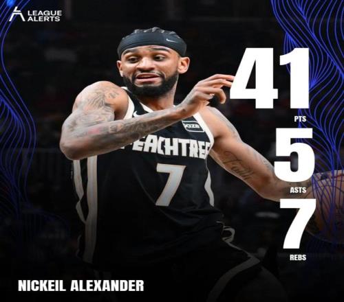 大概是什么概念?41分是亚历山大沃克的生涯最高分,单场9记三分也刷新了生涯纪录。