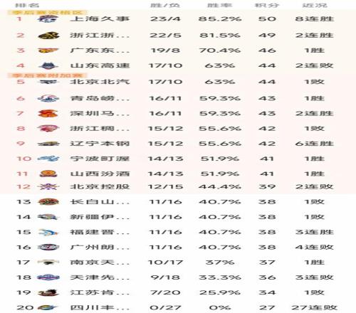 CBA最新积分榜
