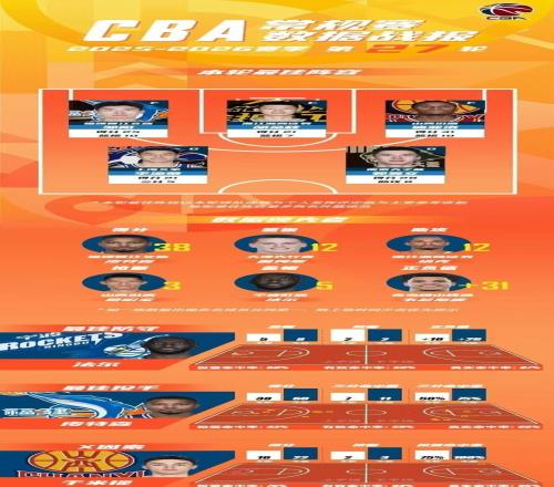 广厦内线核心胡金秋21+7,率领广厦102-88战胜吉林,延续主场15胜0负不败战绩。山西外援迪亚洛得到31+10,率领山西107-102险胜北控。李添荣21+5三分,帮助上海112-96大胜山东豪取8连胜。郭昊文28+8+8,率领同曦101-95逆转浙江。