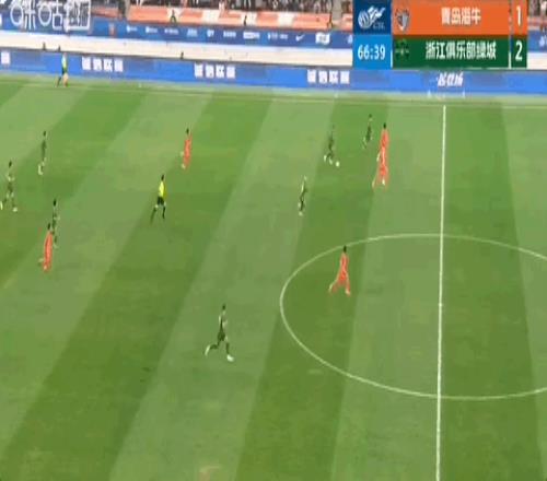 本场比赛进行到第67分钟时,王钰栋连续突破两名队员,金洋洋将其放倒吃到黄牌。