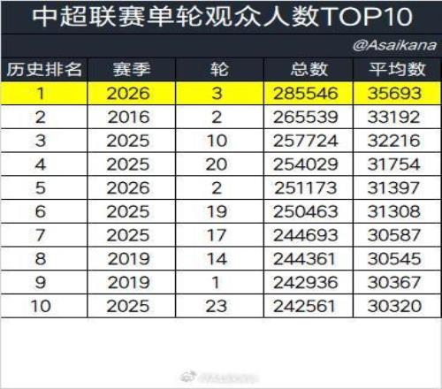 中超单轮观众人数top10