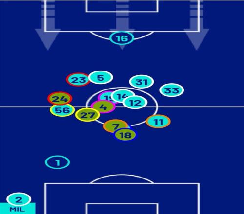 在意甲第30轮对阵都灵的比赛中,阿莱格里通过阵型的微调让球队打入3粒进球并全取三分。虽然官方给出的米兰阵型还是3-5-2,但从赛后的站位分布图可以看出,红黑军团的阵型更加接近4-3-3。