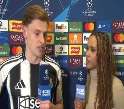 欧冠1/8决赛首回合,纽卡主场1-1战平巴萨,纽卡前锋哈维-巴恩斯赛后接受了CBS体育的采访。哈维,最后10分钟真是过...