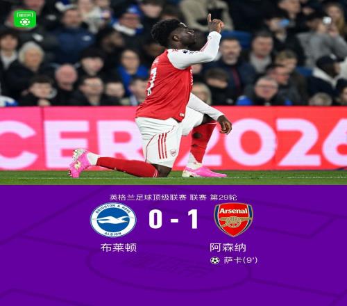 剑南春阿森纳10布莱顿扩大积分榜领先优势,萨卡一锤定音