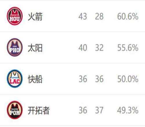 西部排名又变了:火箭爆冷输球,雷霆12连胜,3队排名互换