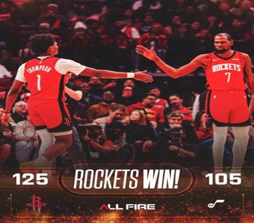 火箭大胜爵士升西部第三:杜兰特18+12助攻加盟新高小贾31+9