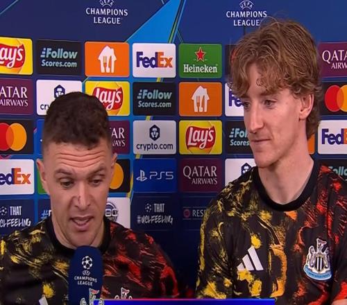 在客场6-1战胜卡拉巴赫的赛后,纽卡后卫特里皮尔和本场比赛上演大四喜的戈登接受了CBS体育的采访。在采访中,他...