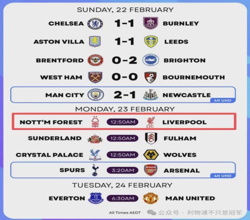体育播报2月23日宣 英超第27轮,凭借麦卡利斯特的绝杀进球,利物浦1-0击败诺丁汉森林,艰难从客场带走胜利。在绝...