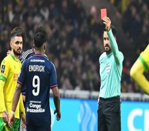 体育播报02月08日宣 法甲第21轮,南特主场迎战里昂,比赛第61分钟,皇马外租至里昂的前锋恩德里克被红牌罚下。恩...