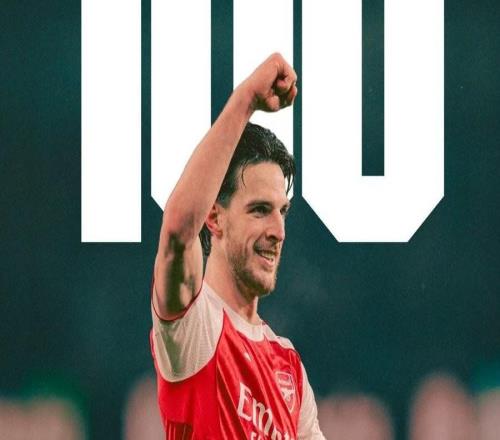 里程碑,赖斯迎来阿森纳生涯第100场英超比赛