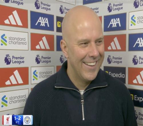 英超第25轮,利物浦主场1-2不敌曼城,赛后,红军主帅斯洛特出席新闻发布会接受媒体提问。阿尔内,你好。你是怎么评...